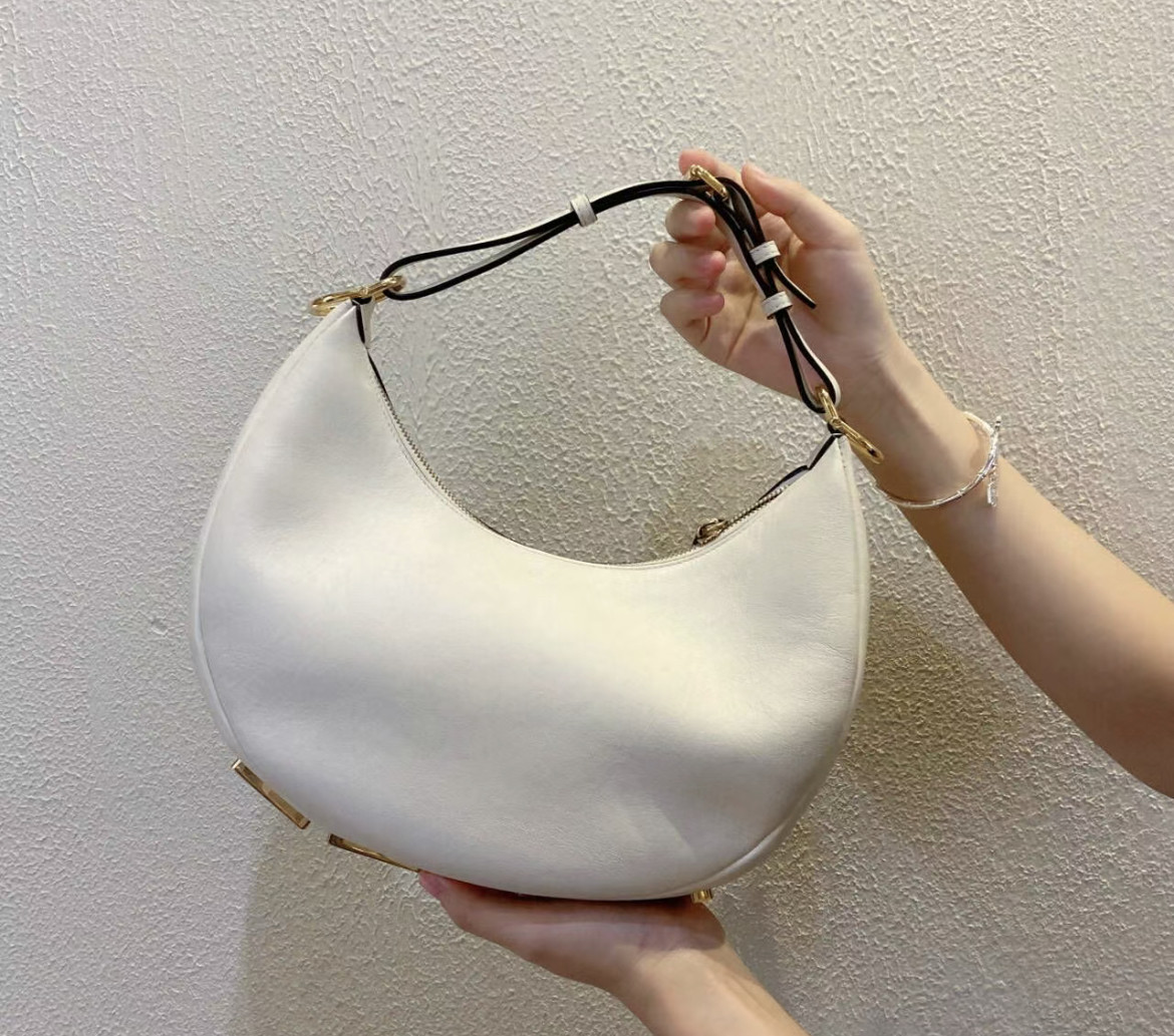 F**di baguette chain midi dove gray tapestry fabric bag with ff motif 14.5x7x24 cm